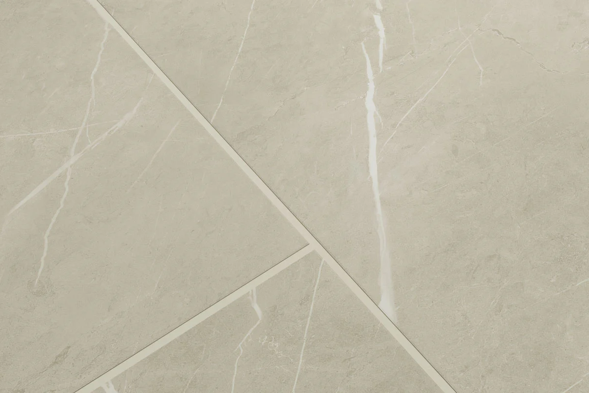 The ultimate in modern elegance, the cream stone gives this tile a glamorous look. Audacity Rigid Core Pre-Grout Click Vinyl Flooring Cream Stone Tile Built-In Underlay is a versatile choice and perfect for achieving a clean, timeless finish.